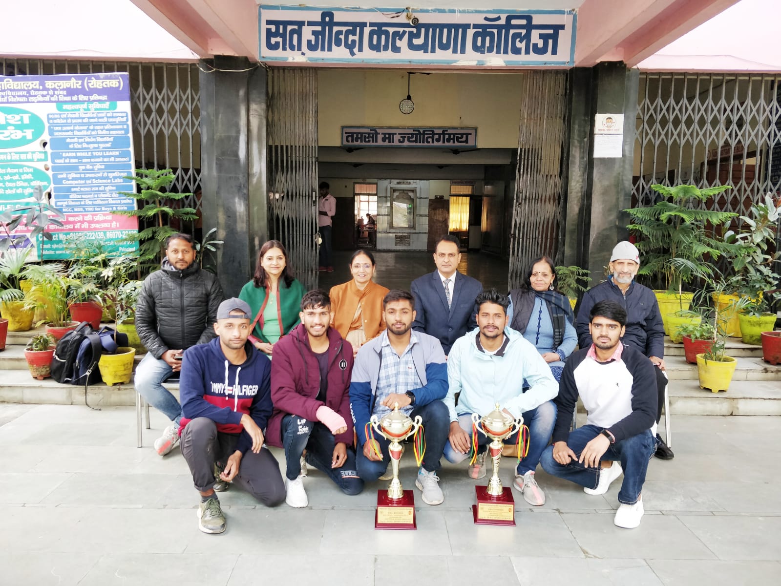 Sat Jinda Kalyana PG College, Kalanaur, lies in the western part of Rohtak district in Haryana on the Rohtak Bhiwani road at a distance of twenty two kilometers from Rohtak. The college is not situated in Kalanaur proper but lies on an intersection on the highway at a distance of three kilometers from Kalanaur town.