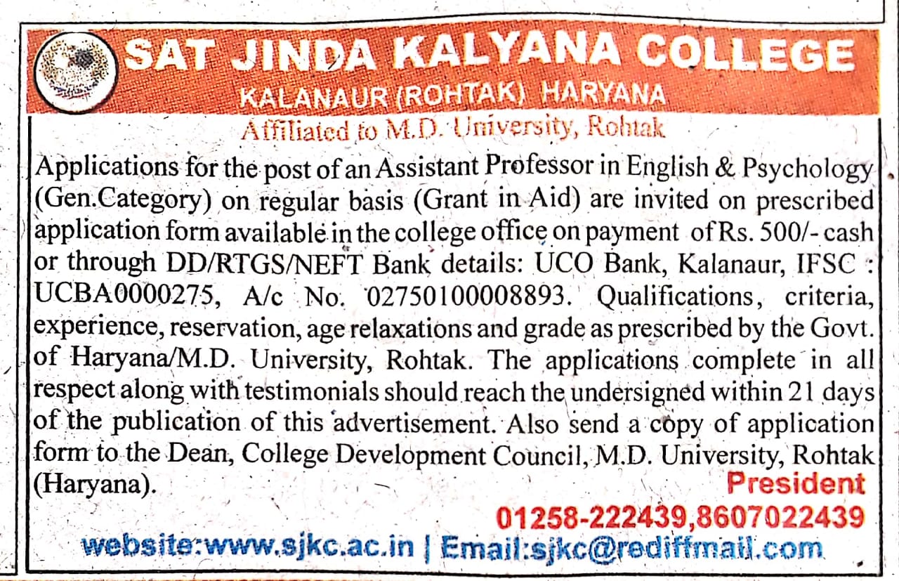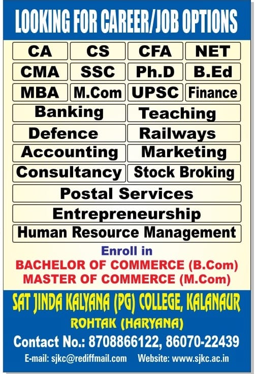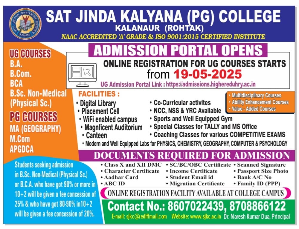 This is the oldest institution of higher education between Rohtak and Bhiwani. Today Kalanaur cannot be imagined without S.J.K college for it has become a part of the history and culture of this area, of the lives of the people.